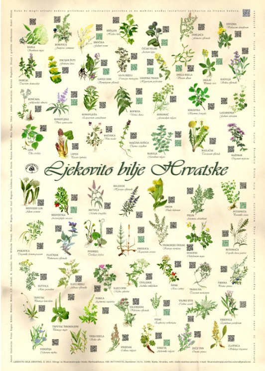 Edukativni plakat ljekovito bilje Hrvatske je autorski rad. Sadrži 63 kvalitetne ilustracije autohtonog samoniklog ljekovitog bilja Hrvatske.